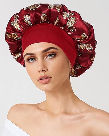 2 Pieces Bonnet Satin Cheveux Nuit, Bonnet en Soie pour Femme