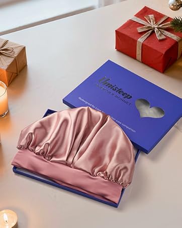 Umisleep - Bonnet nuit double soie 22 Momme, réglable, XL, cheveux longs
