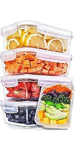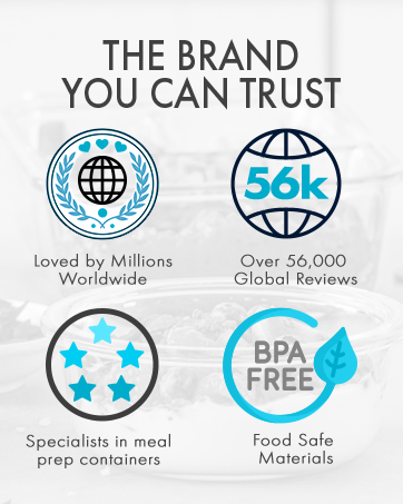 Sans danger pour les aliments - fabriqué à partir de verre borosilicaté. Peut supporter des températures allant jusqu'à 300°C Couvercles SANS BPA - de haute qualité et sans produits toxiques Verre allant au micro-ondes - sauf les couvercles Résistant aux taches et aux odeurs Compatibles congélateur Passe au four - sauf les couvercles Va au lave-vaisselle - sauf les couvercles