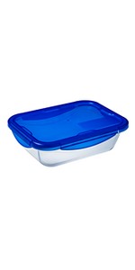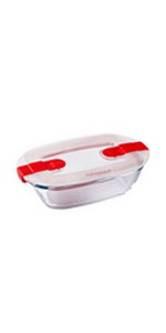 Découvrez Cook & Go, la gamme idéale pour cuisiner et transporter vos repas avec vous. Du four au réfrigérateur, du réfrigérateur au bureau : fabriqués en verre borosilicate résistant aux chocs thermiques jusqu’à 220°C, ces produits conviennent pour une utilisation au four, réfrigérateur, micro-ondes et congélateur. Pour une utilisation optimale, il faut retirer le couvercle pour l’utilisation au four et au micro-ondes. Avec son couvercle hermétique et étanche grâce aux 4 rabats et au joint en silicone amovible, transporter vos petits plats n'a jamais été si facile ! Résultat : On peut cuisiner et emporter les plats, en toute sécurité.