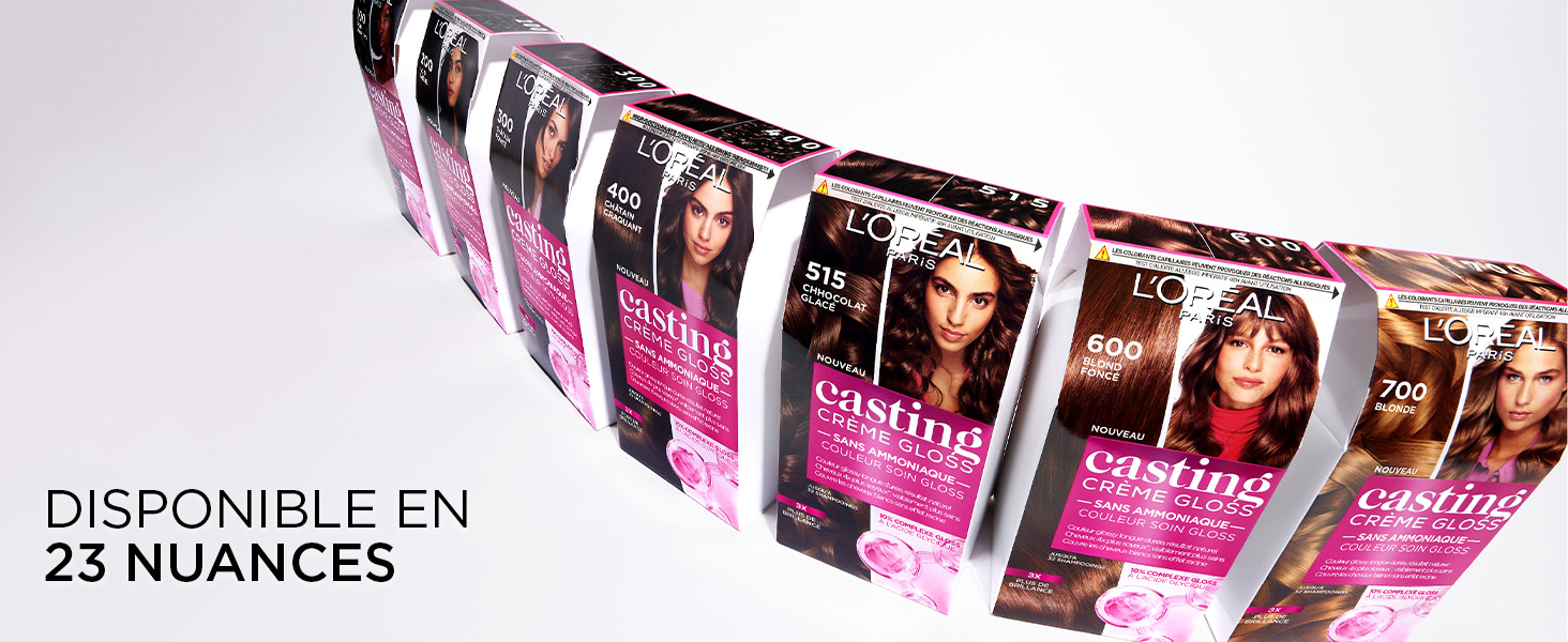 La gamme Casting Crème Gloss est-elle sans ammoniaque ? Oui, Casting Crème Gloss ne contient pas d'ammoniaque, pour embellir vos cheveux de la racine jusqu'aux pointes.