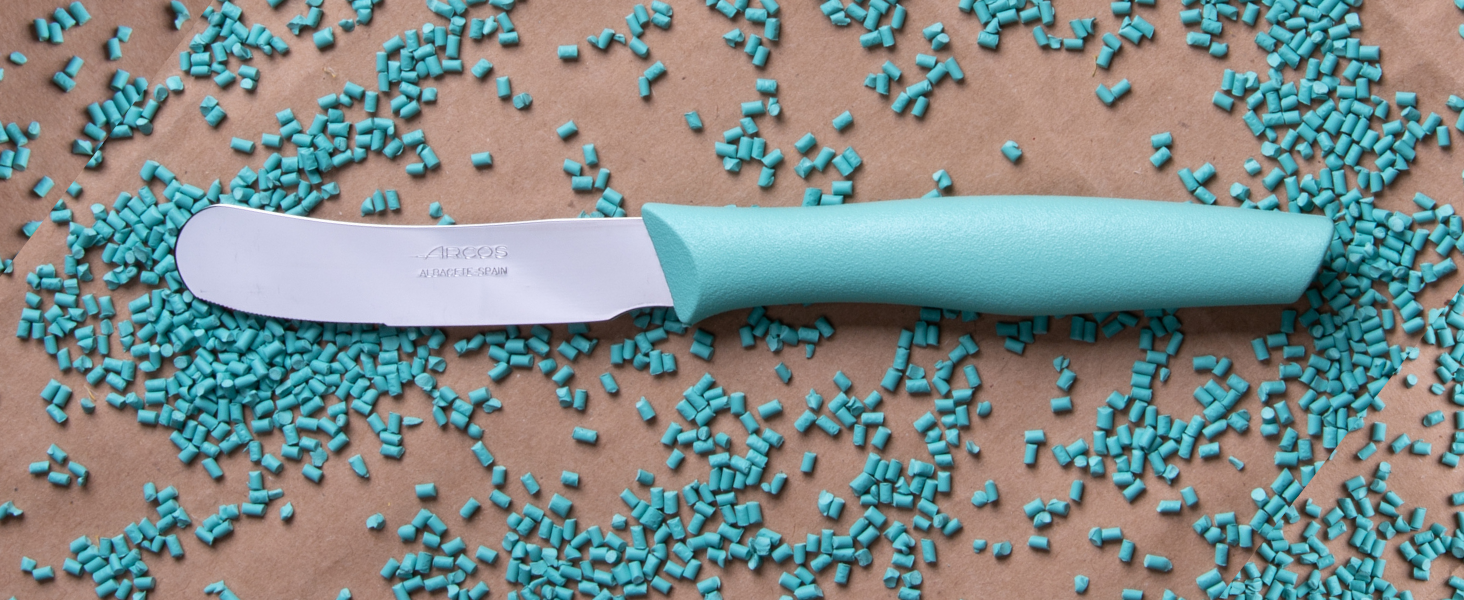 Manche ergonomique en polypropylène, antidérapant et compatible lave-vaisselle.