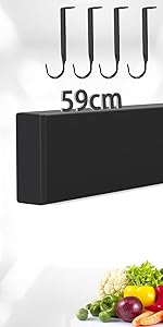 Dmore - Barre Magnétique 50 cm - 4 crochets, fixation sans perçage