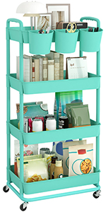Le chariot de rangement a quatre roues au fond (deux verrouillables) qui peuvent tourner librement à 360 degrés. Vous pouvez facilement déplacer les articles de votre panier où vous en avez besoin.