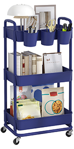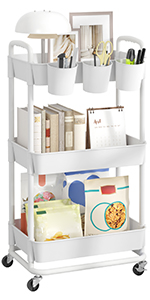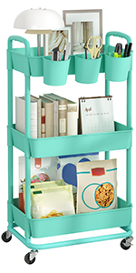 JIUYOTREE - chariot rangement 3 niveaux, roulettes, poignées, gobelets, 78x44x36 cm, rose