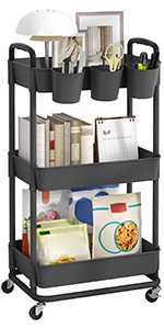 Le chariot de rangement a quatre roues au fond (deux verrouillables) qui peuvent tourner librement à 360 degrés. Vous pouvez facilement déplacer les articles de votre panier où vous en avez besoin.
