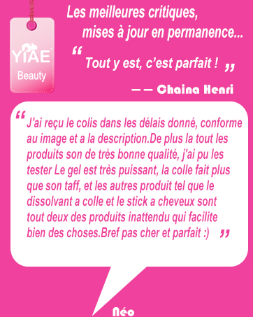 Le dissolvant de résidus de colle YIAE peut être utilisé pour enlever et nettoyer les résidus de colle de toutes les colles pour perruques, laques et rubans adhésifs disponibles sur le marché.