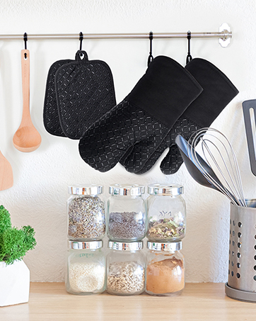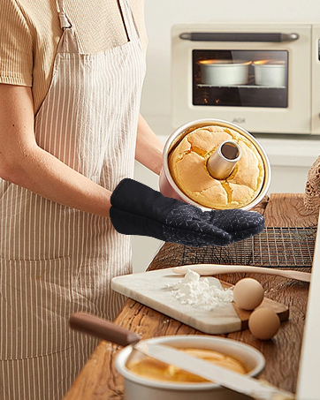 La partie qui recouvre le poignet est en tissu et protège vos mains de la chaleur, même dans le four.