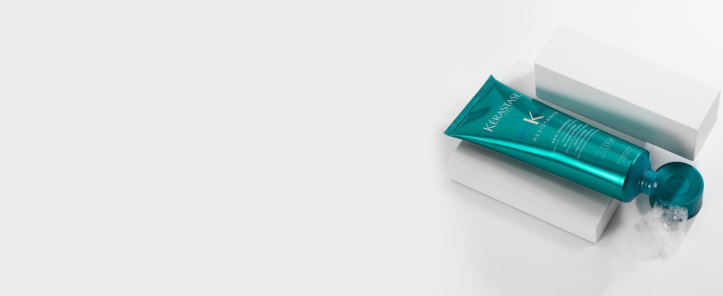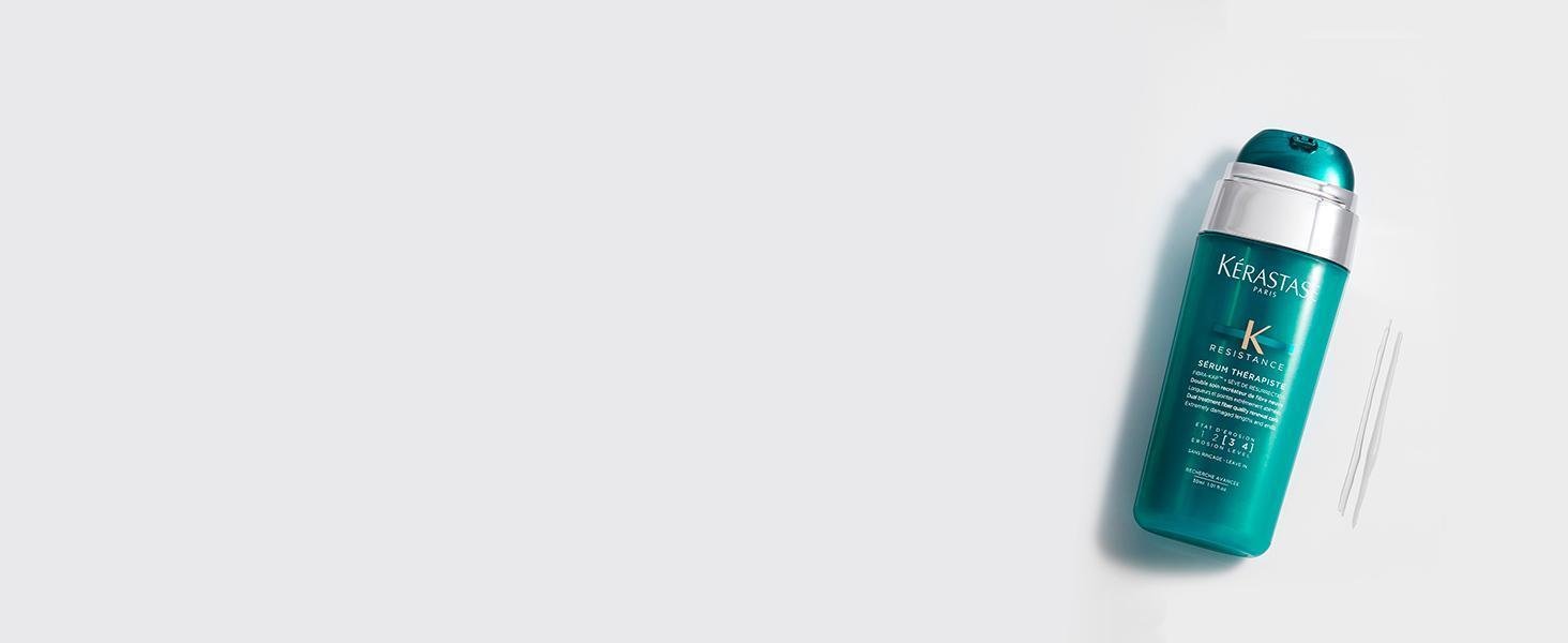 Découvrez Résistance Thérapiste, la gamme de soins professionnels dédiée aux cheveux très abîmés, sursollicités, cassants et fourchus à cause des brushings à répétition, du stress et des carences. Bénéficiant de la technologie FIBRA-KAP, elle remplace les micro-protéines manquantes qui assurent la cohésion de la kératine pour favoriser leur synthèse et recréer une fibre neuve. La fibre est nourrie et renforcée, les fourches sont réparées et les cheveux souples et brillants.