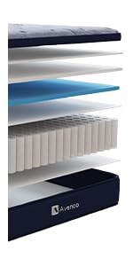 Le matelas Avenco est fabriqué à partir de matériaux de haute qualité, le tissu et la mousse du matelas ont été certifiés OEKO-TEX et CertiPUR-US, sûrs, non toxiques, inoffensifs et inodores, doux pour la peau et confortables, vous pouvez les utiliser en toute tranquillité !