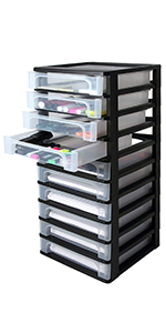 Optez pour un rangement simple mais efficace en vous équipant de l'une des tours en plastique Organizer Chest. Chacune est composée de plusieurs tiroirs transparents permettant de visualiser d'un simple coup d'oeil leur contenu. Chaque tiroir dispose par ailleurs d'une poignée facilitant ainsi son ouverture et est adapté pour le rangement de vos documents au format A4. Le dessus creux de chaque Organizer Chest vous permet de conserver à portée de main certains accessoires.