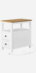 VASAGLE - table d'appoint 2 tiroirs, multiprise, rangement, 35x30x70cm - LET325B01