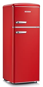 Ce réfrigérateur double porte au look rétro offre 246 litres de capacité.