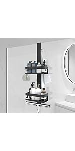 Étagère de douche suspendue - 3 paniers réglables, sans perçage, noir, organiseur 3 couches