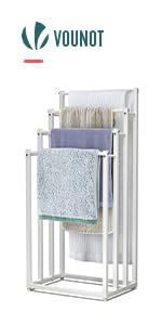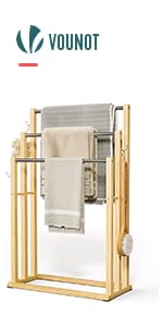 VOUNOT - Porte-serviettes 4 niveaux bambou - autoportant, crochets, bain