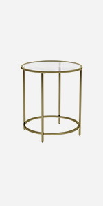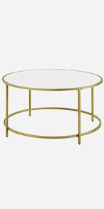 VASAGLE - Table basse ronde dorée verre, cadre AER, 55x55x45 cm, LGT21G