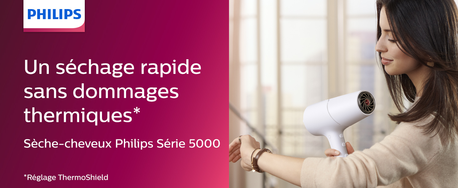Philips - Sèche-cheveux Série 5000 - 2100W - ThermoShield, 3 températures, 2 vitesses - BHD500/00