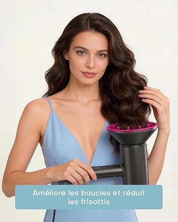 Embout diffuseur et concentrateur inclus pour boucles ou brushing.