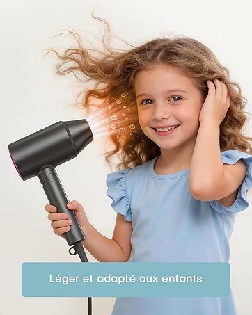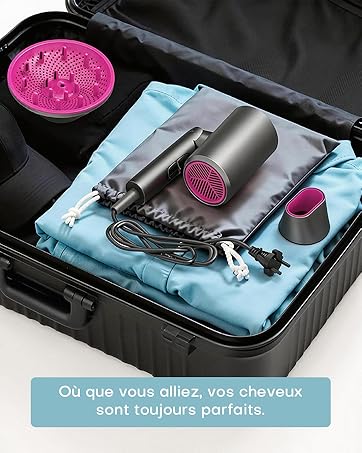 1800W Sèche-cheveux avec Diffuseur Pliable, Technologie Ionique, Séchage Rapide